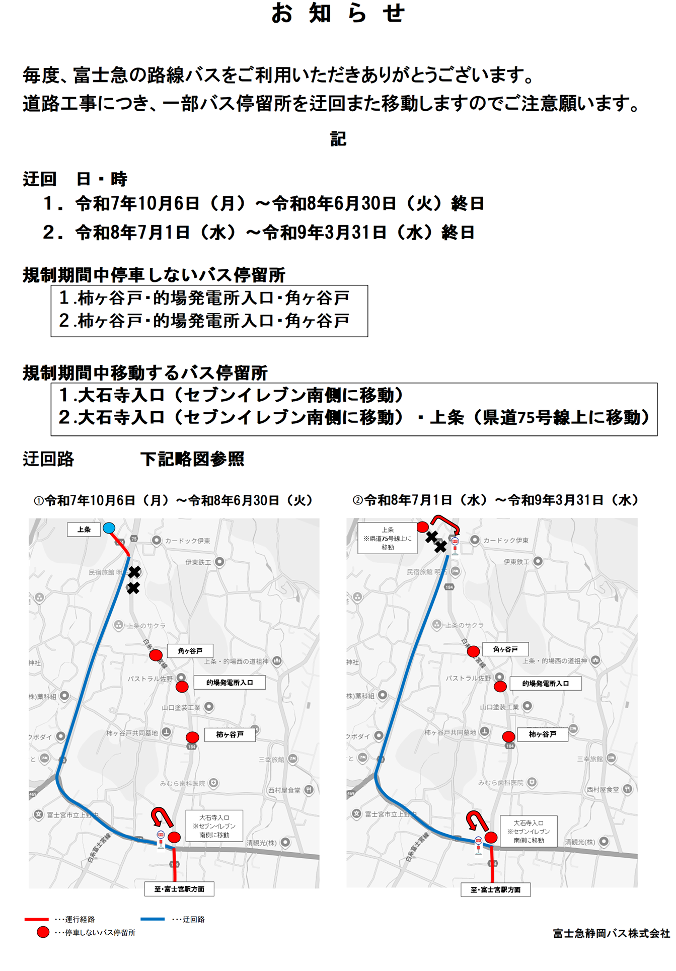 【お知らせ】道路工事に伴う交通規制による迂回運転について(富士宮市内・上野線)【2027年3月31日まで】