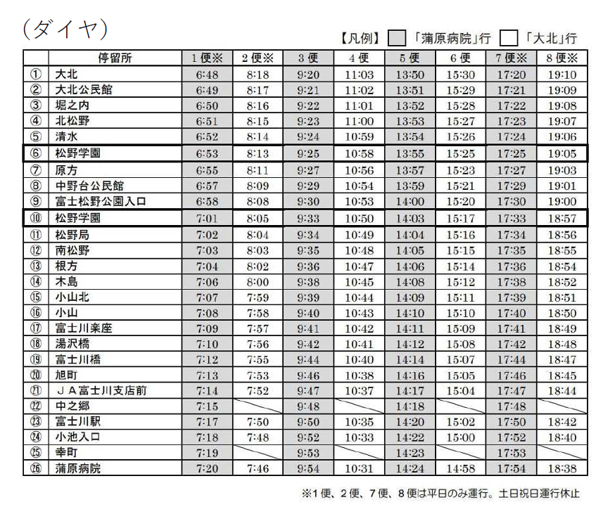 富士市の運行する大北線代替交通についても自由に乗降できることとします。