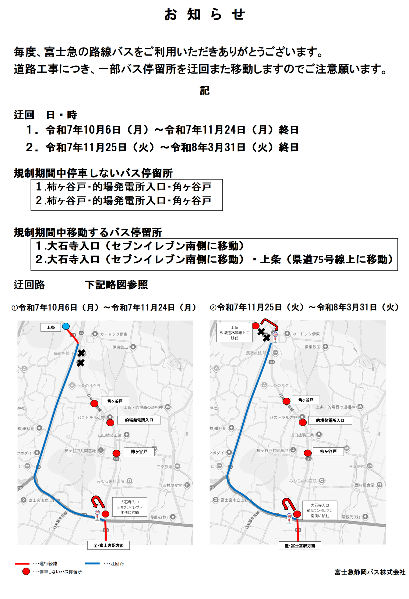 平素より富士急静岡バスをご利用くださいましてありがとうございます。