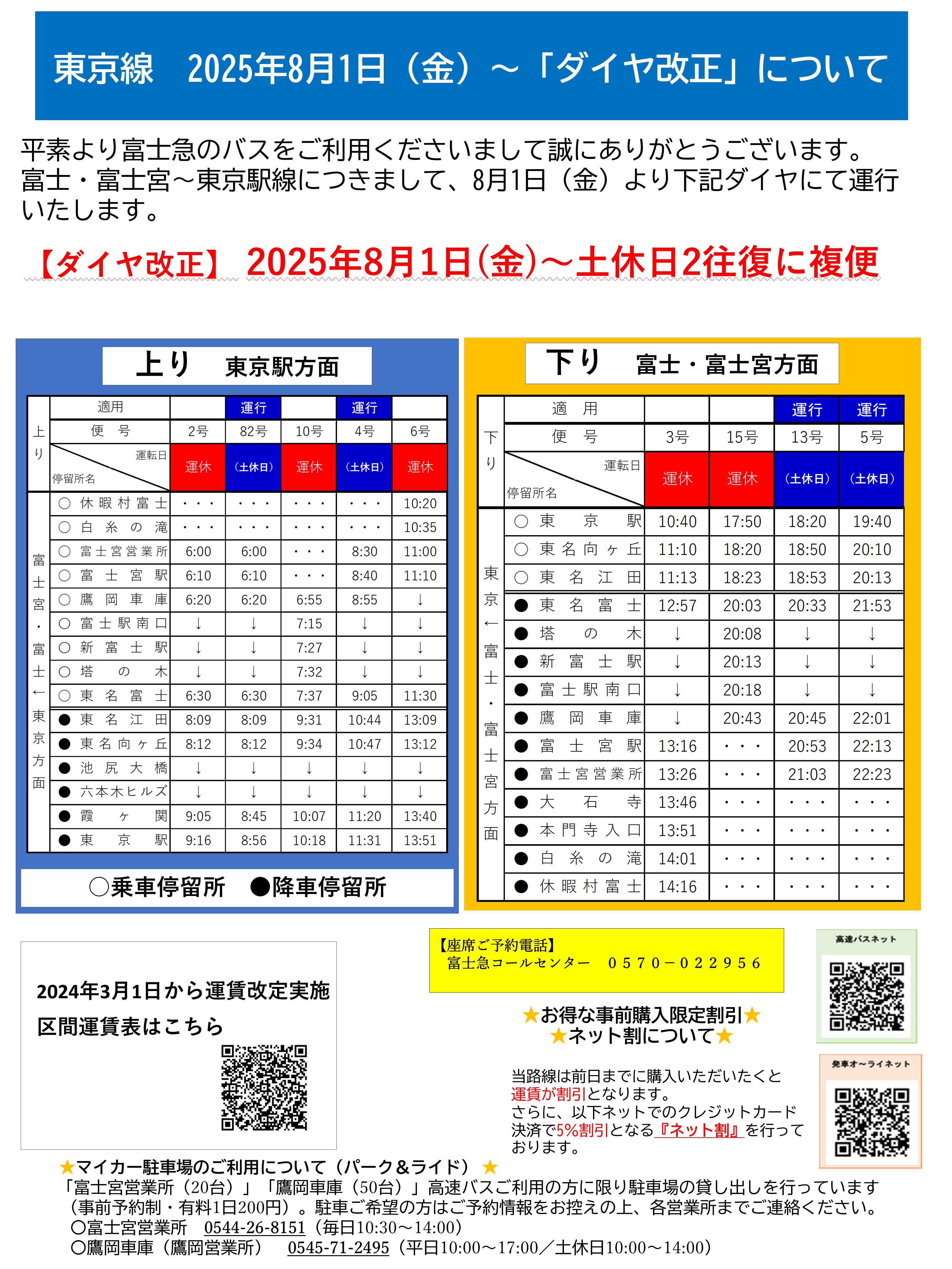 高速バス「富士宮・富士~東京駅線」2025年8月1日(金)~「複便」について